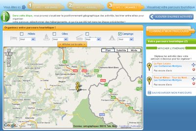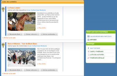 - Choisir parmi les propositions recensées sur le site celles qui plaisent et les ajouter à son parcours
