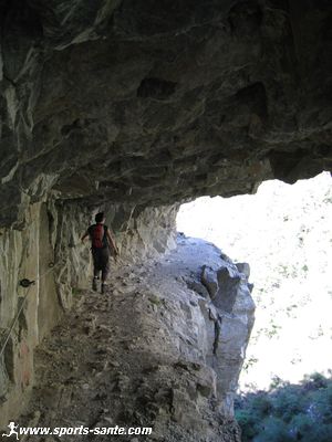 Falaise aménagée d'une passerelle métallique